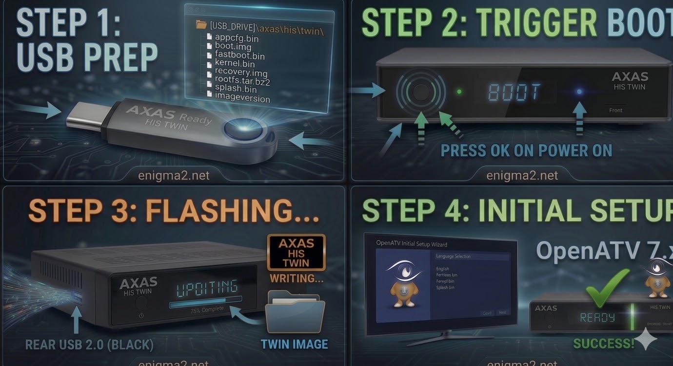 To flash the AXAS HIS TWIN (non-Plus), you will use the same HiSilicon-based method as the others in this series. The most critical detail is ensuring the subfolder name matches this specific hardware exactly so the bootloader can find it.
