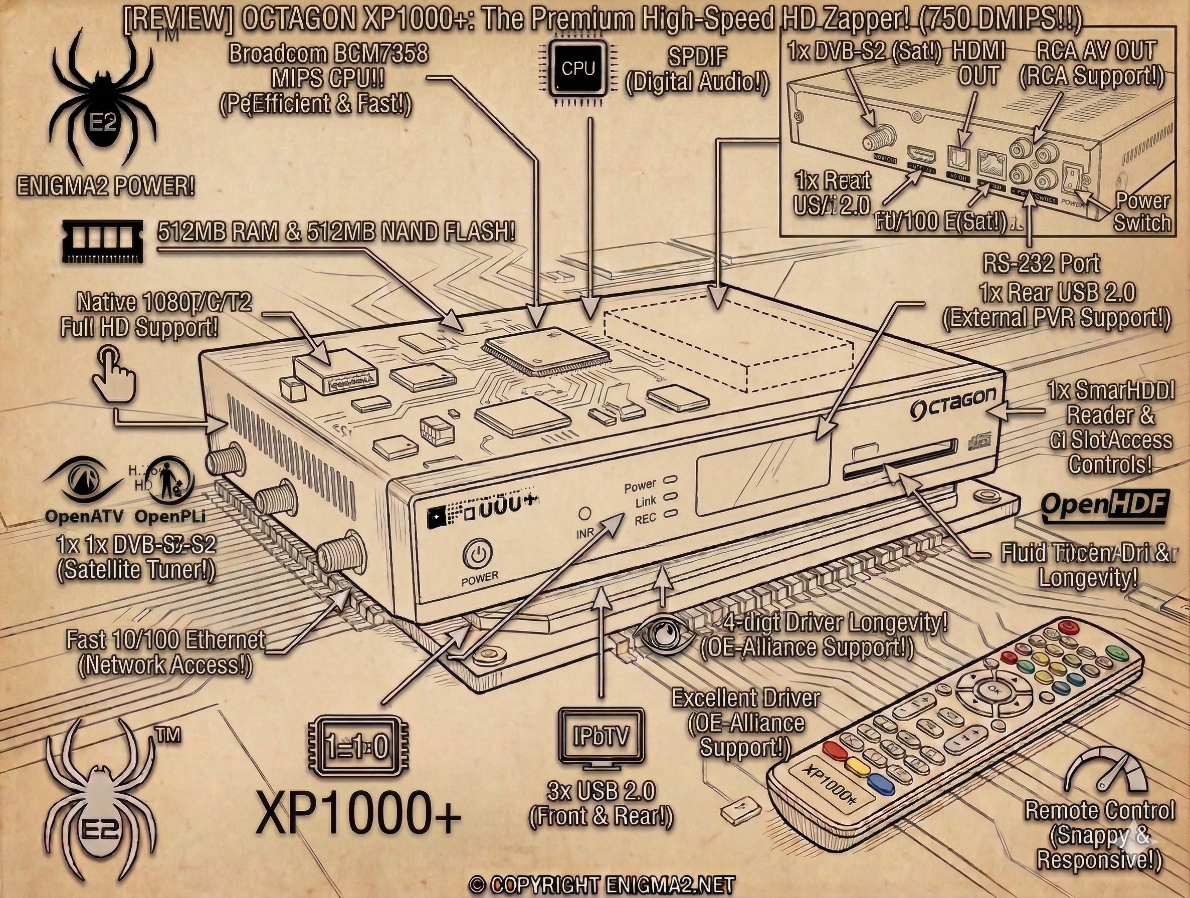The Octagon XP1000+ is a beloved high-speed entry in the Enigma2 world. While it shares the “XP1000” name with older models, the “Plus” designation signifies a jump in both processing power and efficiency, making it a very capable Full HD receiver even by 2026 standards.