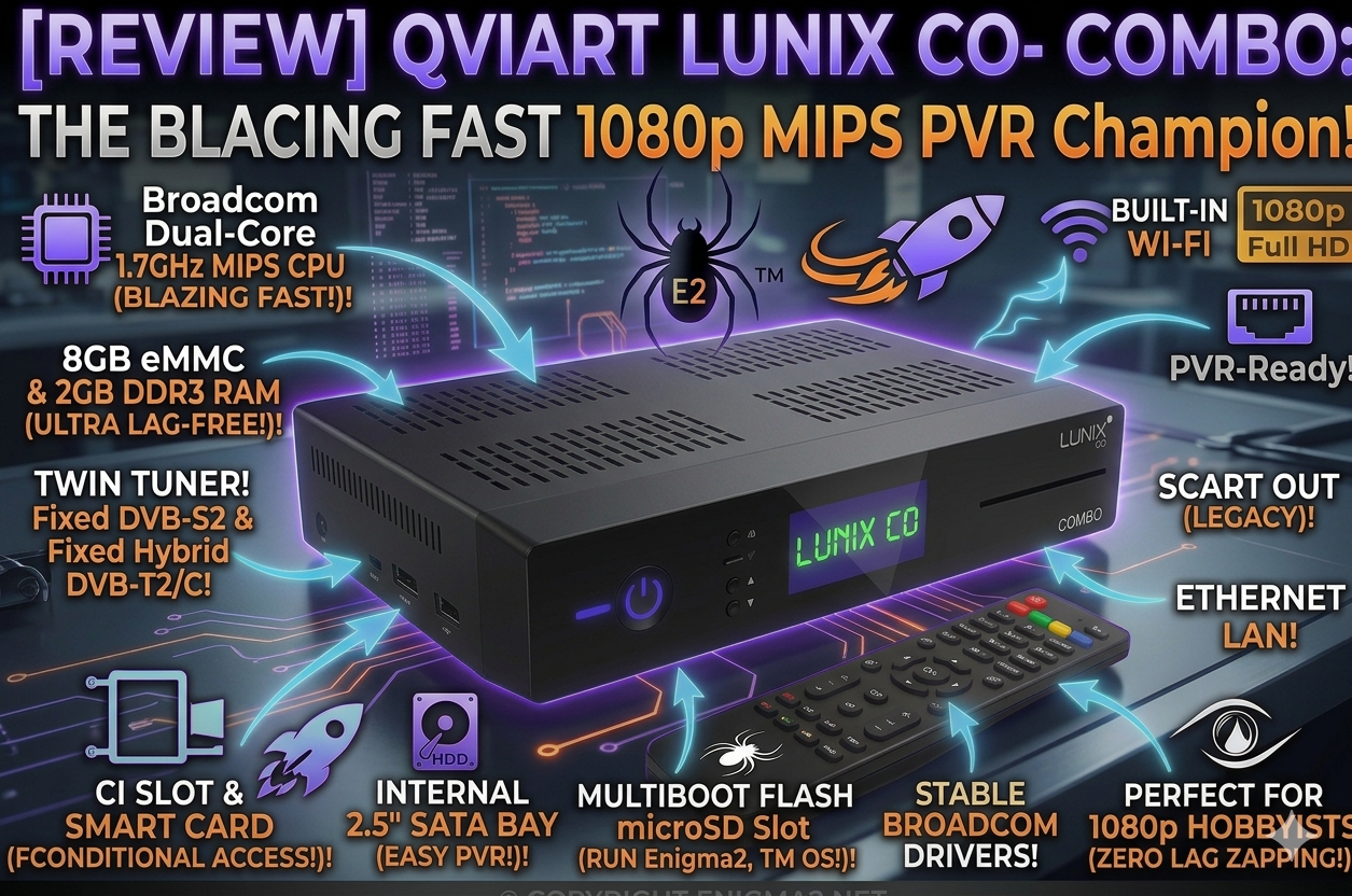 External Picons & Flash Expansion: The box features an external microSD slot. This is the secret weapon: you can install all your heavy picons and the EPG database directly onto a microSD card, keeping your internal flash lean, fast, and safe.