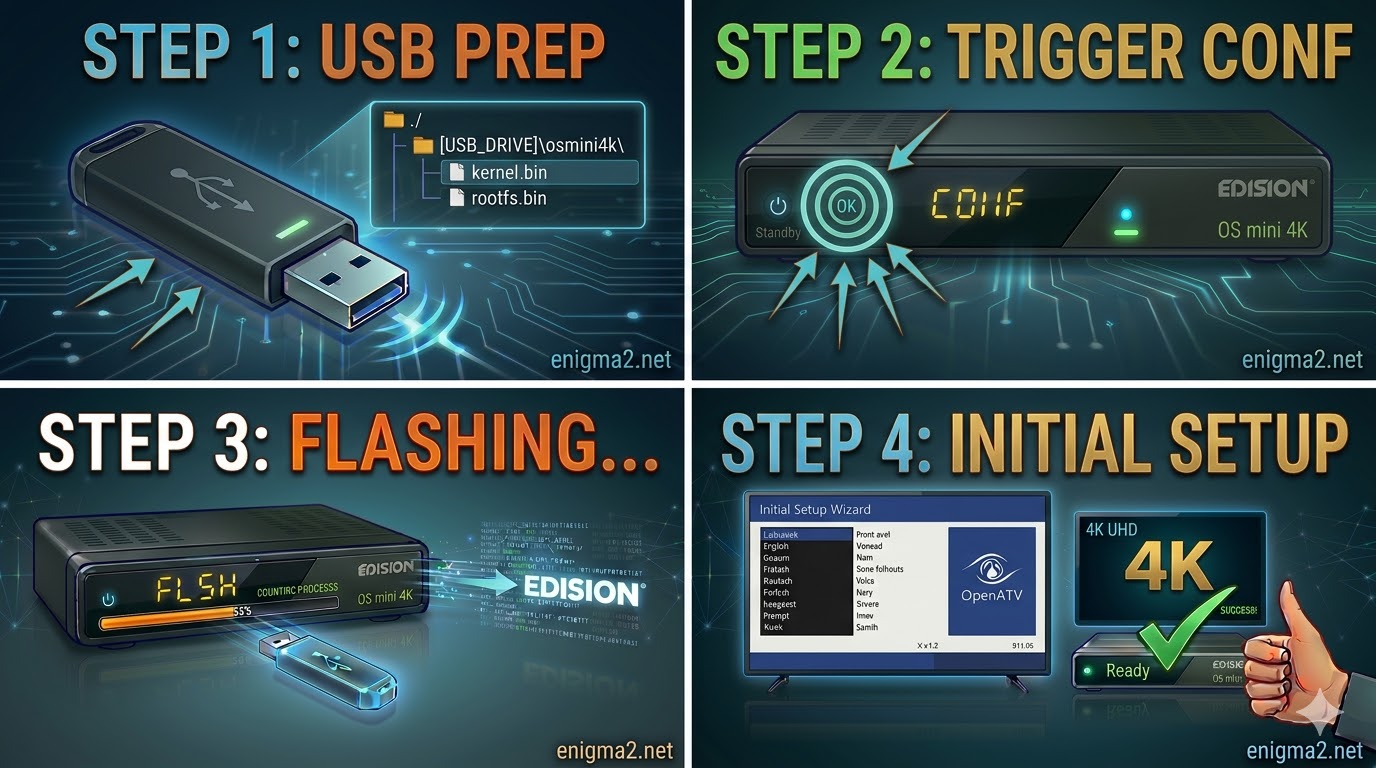 The Folder Path: Extract your Enigma2 image (OpenATV, OpenPLi, etc.). The root of your USB drive must contain this folder: