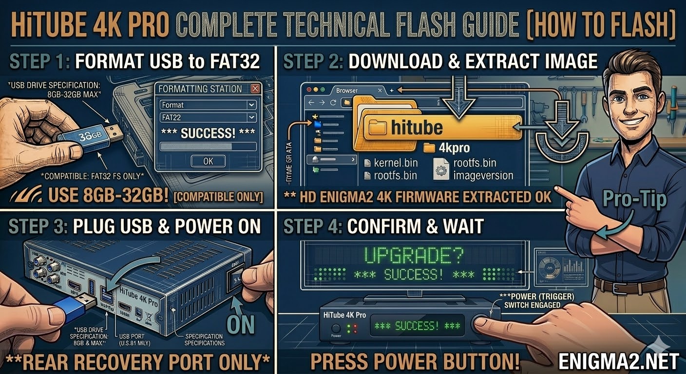 To flash the HiTube 4K Pro, you will follow the modern HiSilicon (Hisil) recovery procedure. This receiver is very popular for multiboot, allowing you to run different images (like OpenATV, OpenHDF, or OpenPLi) from a single USB flash.