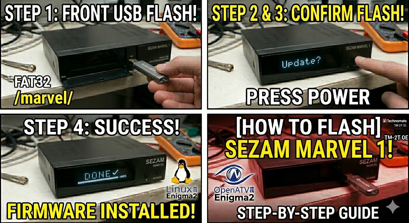To flash the Sezam Marvel 1 (often referred to simply as the Marvel), you follow a specific procedure tailored for this high-performance triple-tuner receiver.