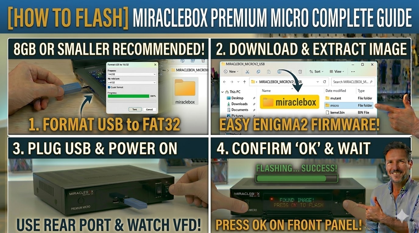 To flash the original Miraclebox Premium Micro (the V1 version), you will follow the standard procedure for the Premium line, but with a specific subfolder name that distinguishes it from the V2 or the Mini models.