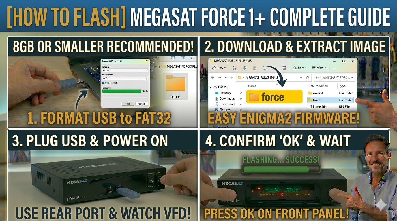 The Miraclebox Premium Ultra is a robust machine, but its bootloader can be sensitive to USB stick types. If the “Found Image” prompt doesn’t appear, try a different (ideally older/smaller) USB stick. Also, ensure the subfolder is named exactly ultra; if it’s named after a different Miraclebox model, the flash will fail.