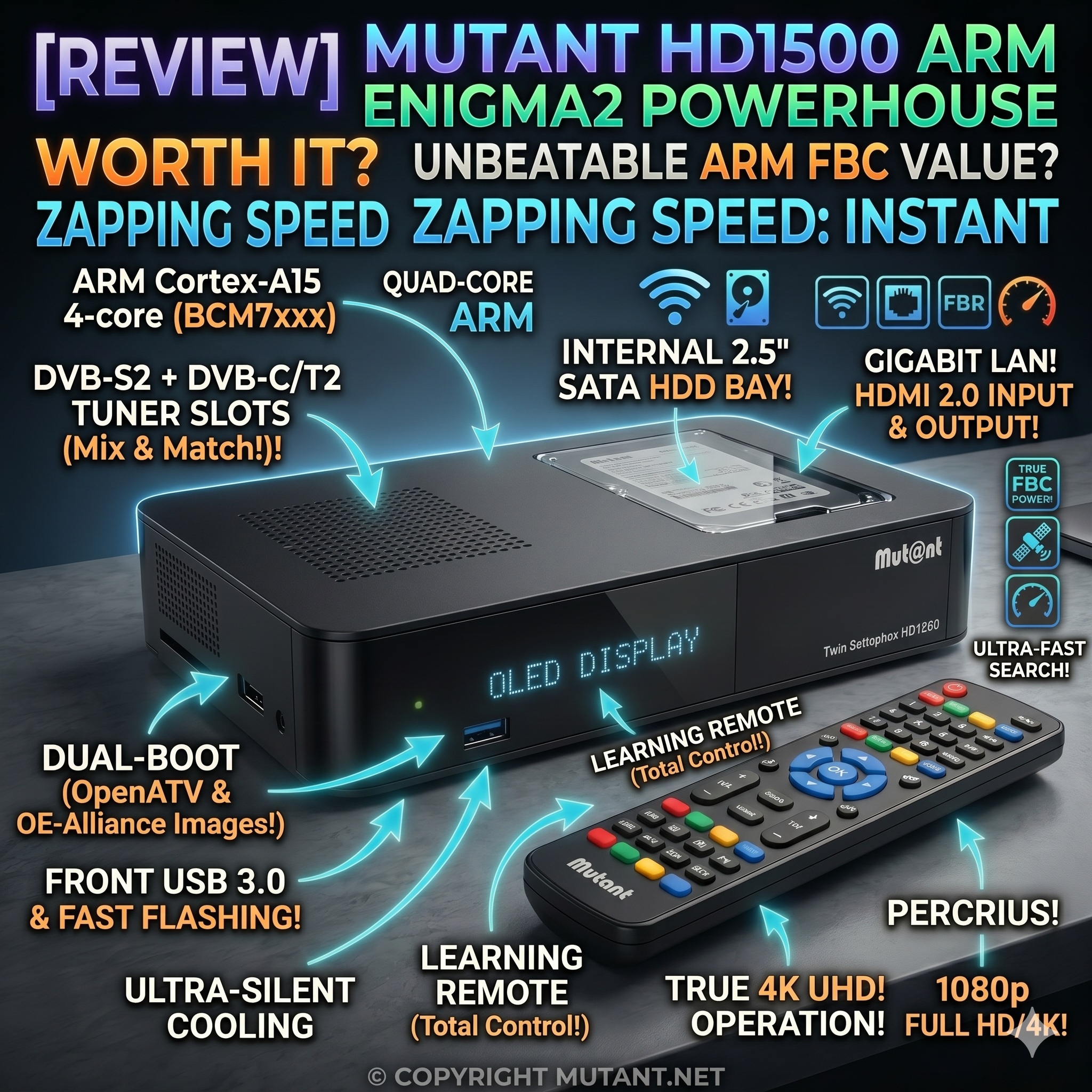 The Mutant HD1265 is the “Practical Professional’s” choice for a secondary room or a budget-conscious satellite feed. It isn’t a 4K powerhouse like the HD51, nor a multi-tuner beast like the HD2400.