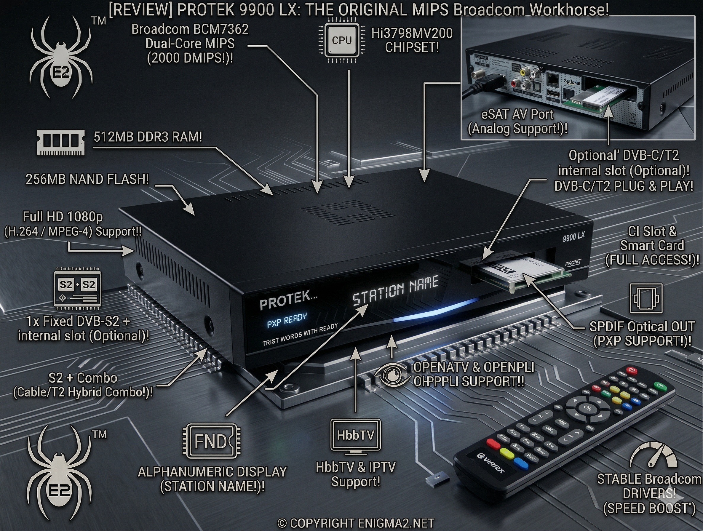 Processor (2000 DMIPS): The 750 MHz Dual-Threaded MIPS CPU delivers the “Speed Boost” necessary for modern Enigma2 use. This architecture allows the receiver to handle background tasks—like a secondary recording or an IPTV stream—without causing the user interface to lag.
