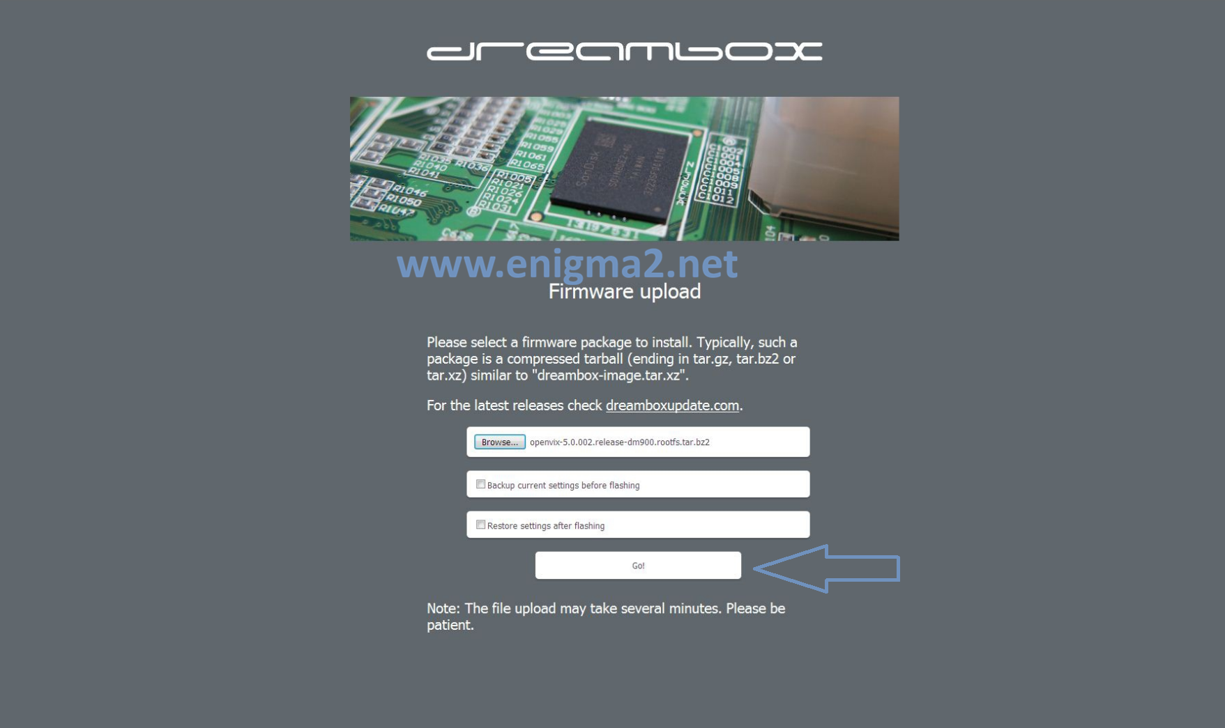7.) Now click “Select File” and then choose image for the DM920 and after that click “Select”