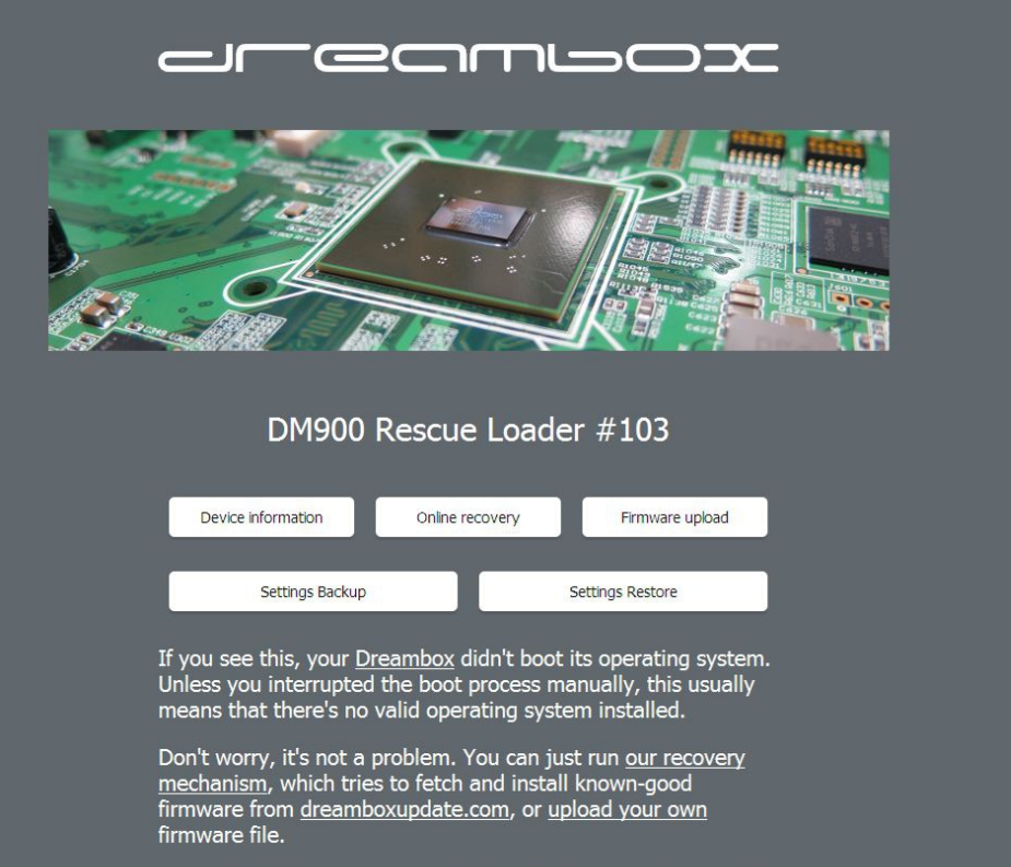 4.) After few seconds a info shows up on TV, that DM900 is in Rescue Mode