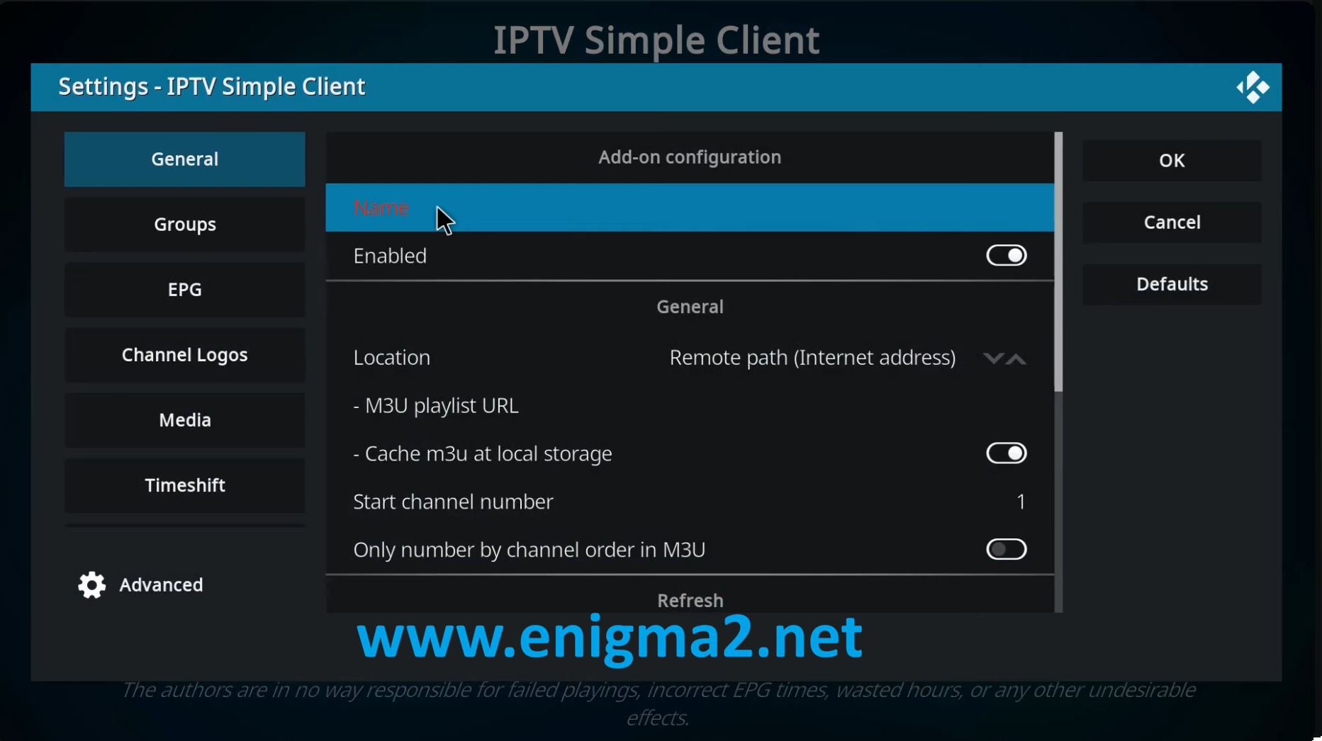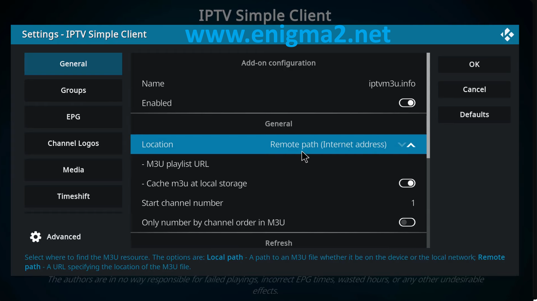 - Click OK in the IPTV Simple Client settings menu
